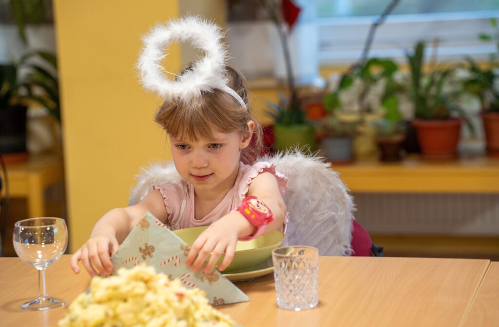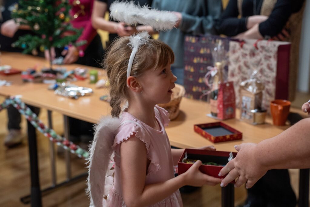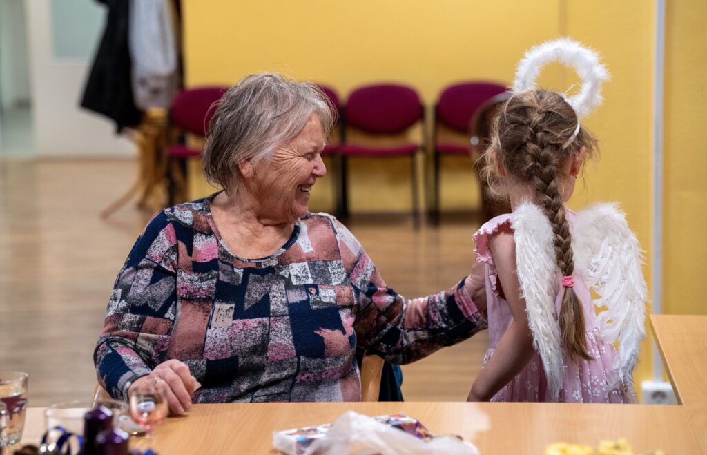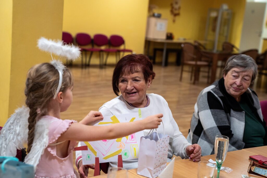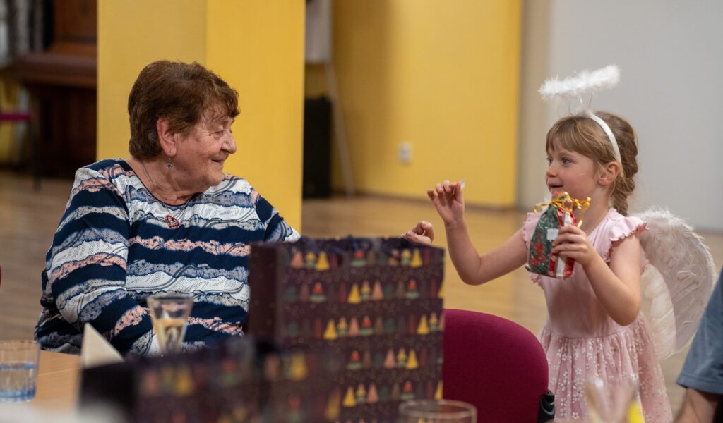 Setkání se zúčastnilo 14 seniorů, 7 studentek, ředitelka TOTEMu a dobrovolnice Mája, která se proměnila v andílka a s úsměvem pomáhala a rozdávala dárečky. U jednoho stolu se tak potkaly generace i role – přirozeně, lidsky a s radostí ze společného času.