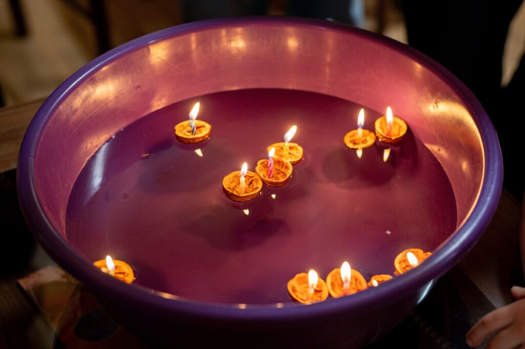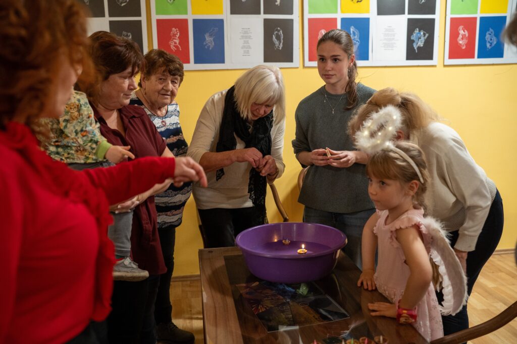 Kromě štědrovečerní večeře a koncertu si účastníci připomněli i vánoční tradice, tak jak si je společně navzpomínali už na přípravném setkání v listopadu. Rozkrajovalo se jablíčko, pod talíři se objevila šupina, losoval se rybičkový los – a pár lístků bylo dokonce výherních. Nechybělo ani pouštění lodiček. Právě při těchto drobných rituálech se přirozeně sdílely vzpomínky a příběhy.